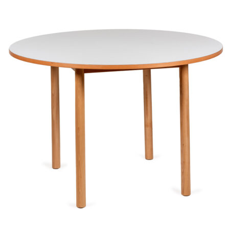Table avec structure en bois. Couvercle rond disponible en différents diamètres.